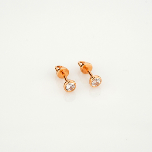 Елегантні сережки-гвоздики у формі квадрата в червоному золоті з фіанітами - 1876967