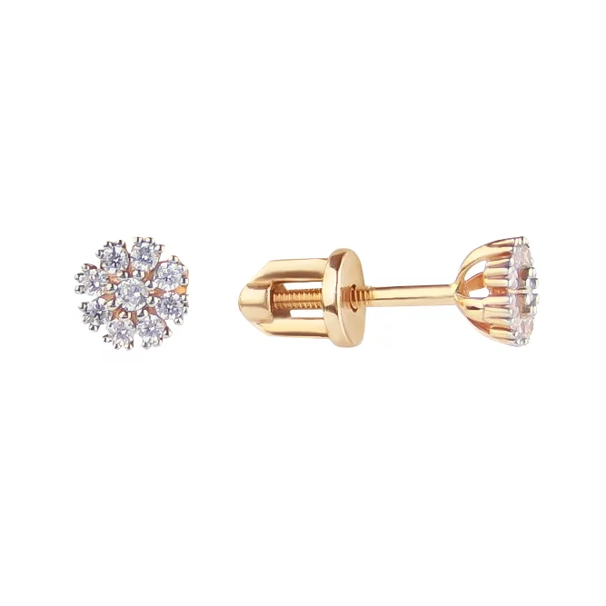 Золоті сережки-гвоздики з фіанітами Квітка - 613869