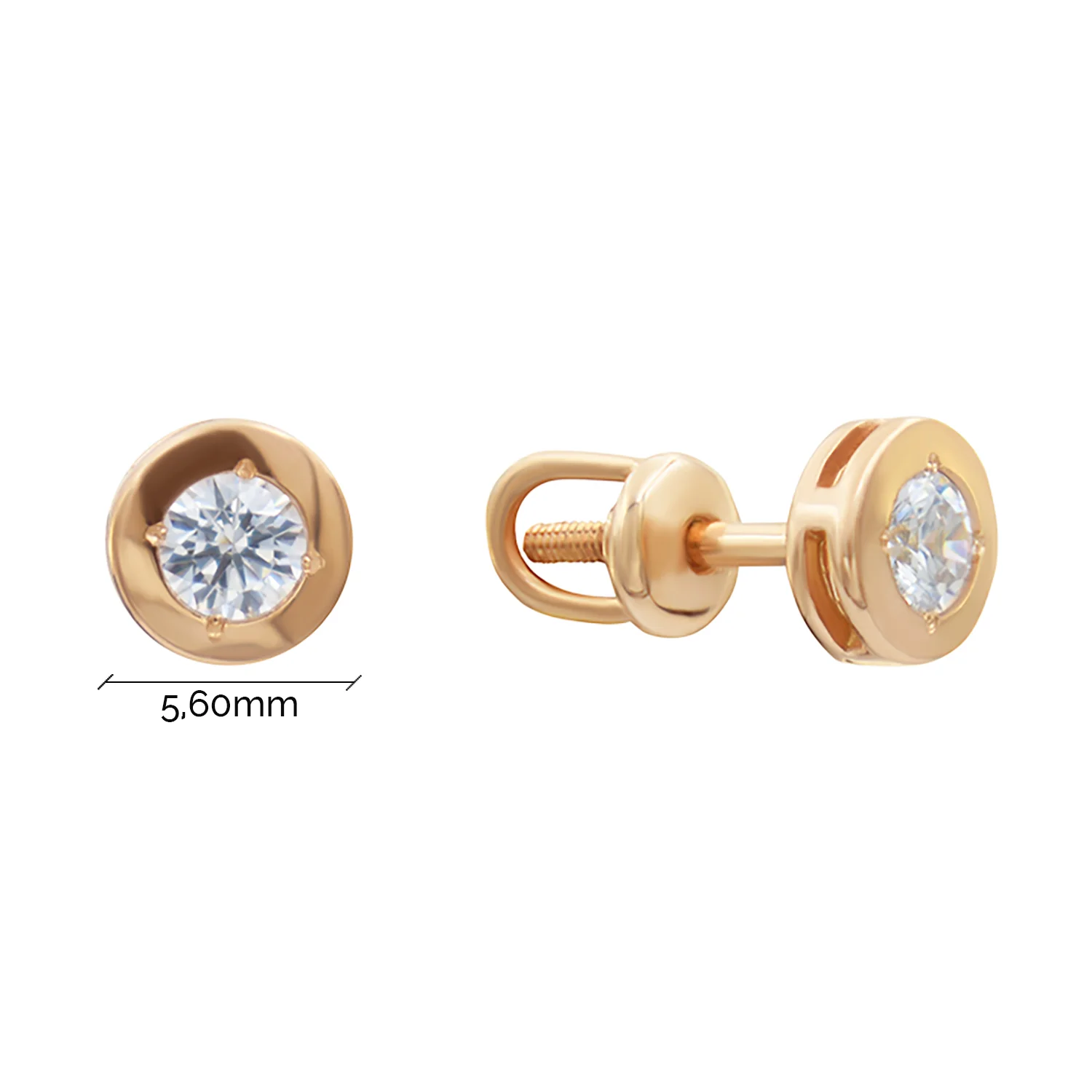 Сережки-гвоздики з червоного золота з фіанітом у вигляді квіточки - 1445201