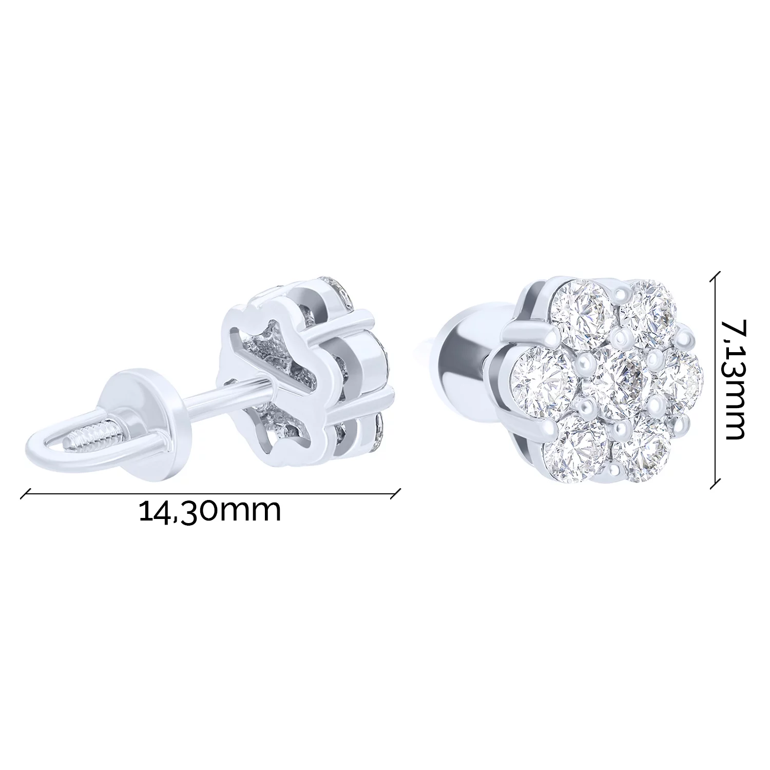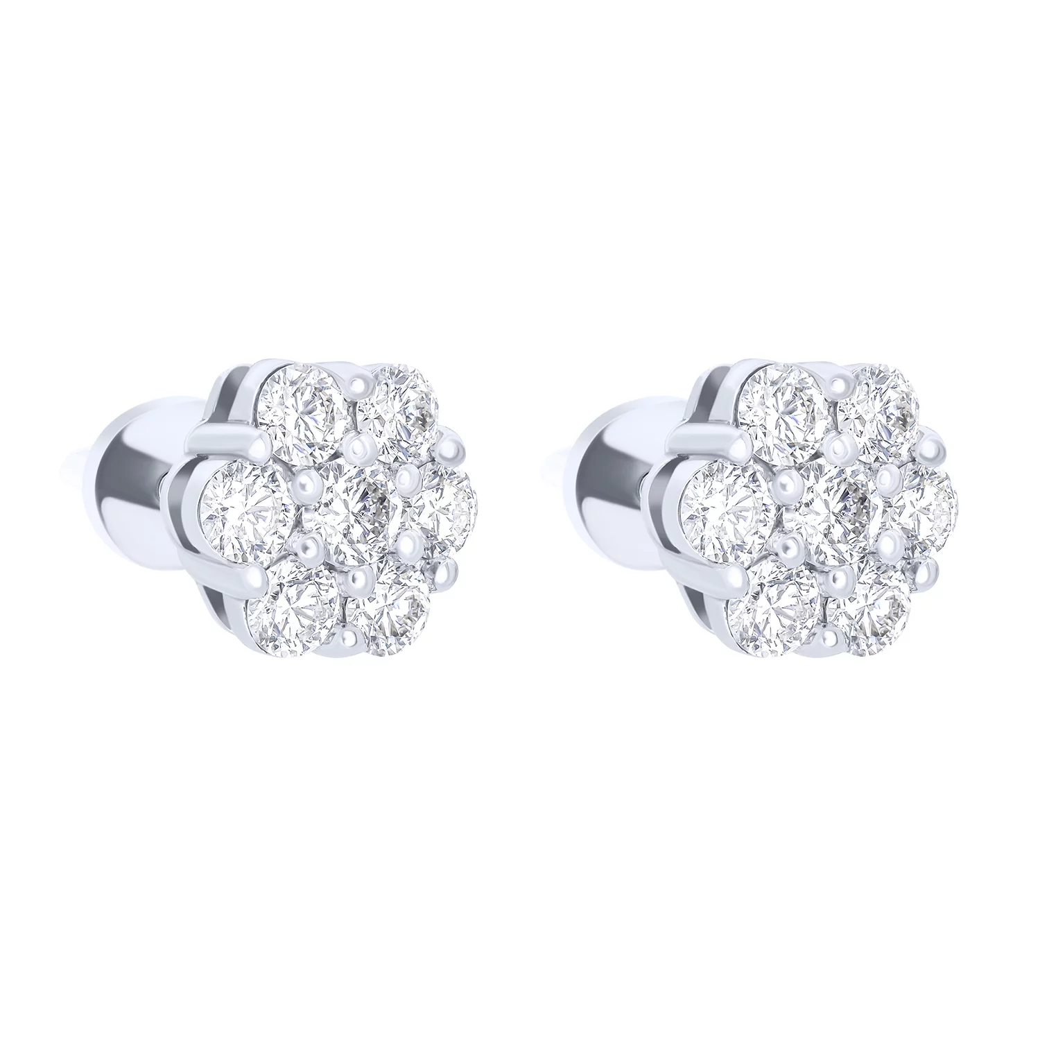 Елегантні сережки-гвоздики "Квіточка" у білому золоті з діамантами - 1958571