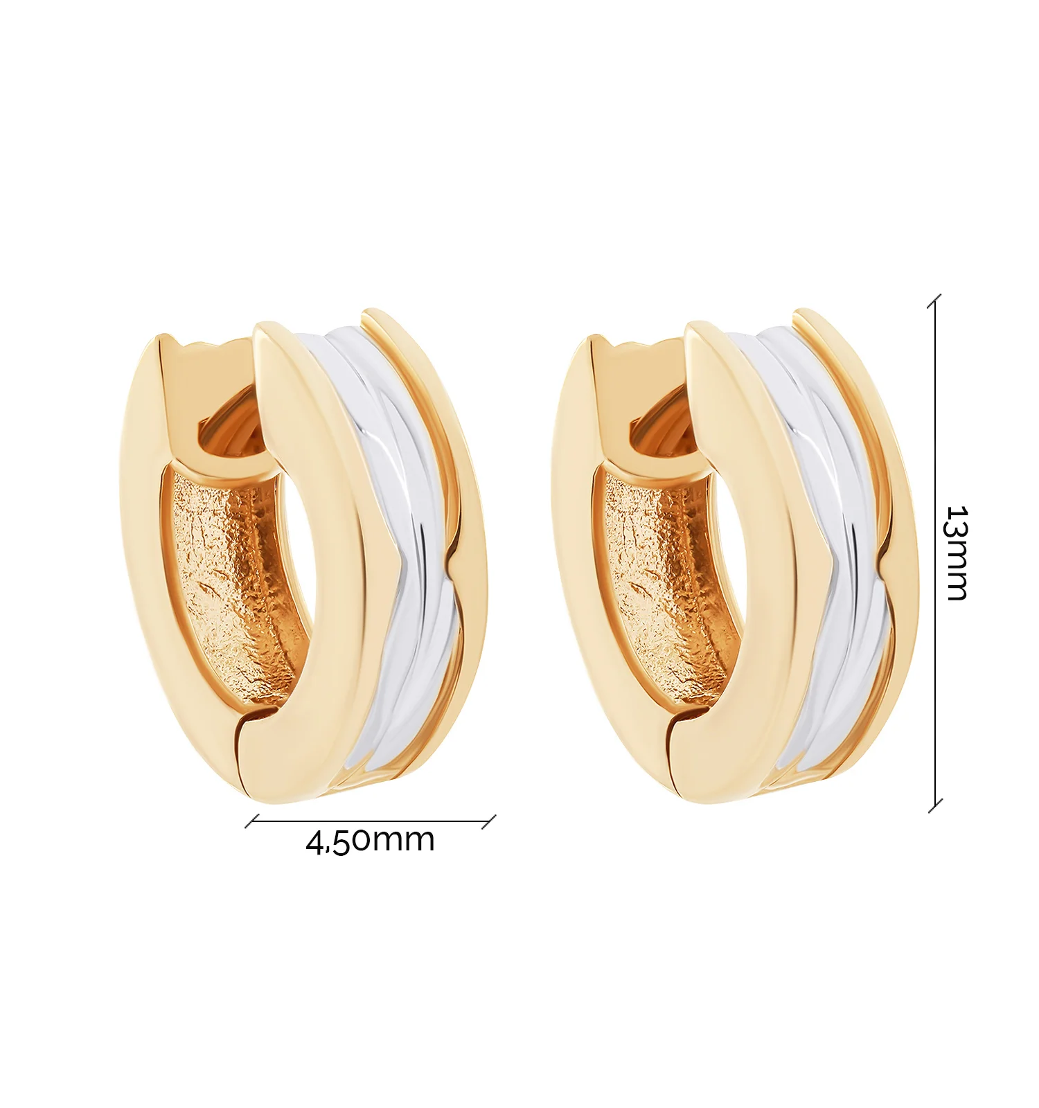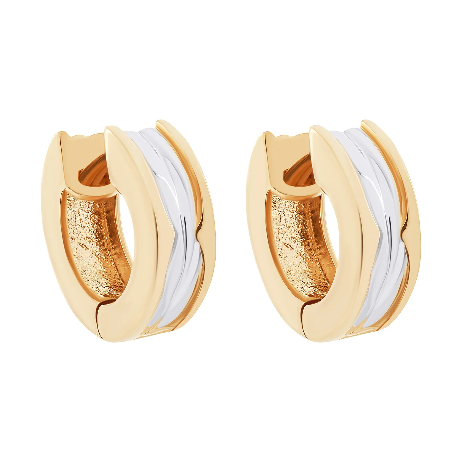 Сережки-кільця з комбінованого золота з алмазною гранню "Трініті" - 1350426