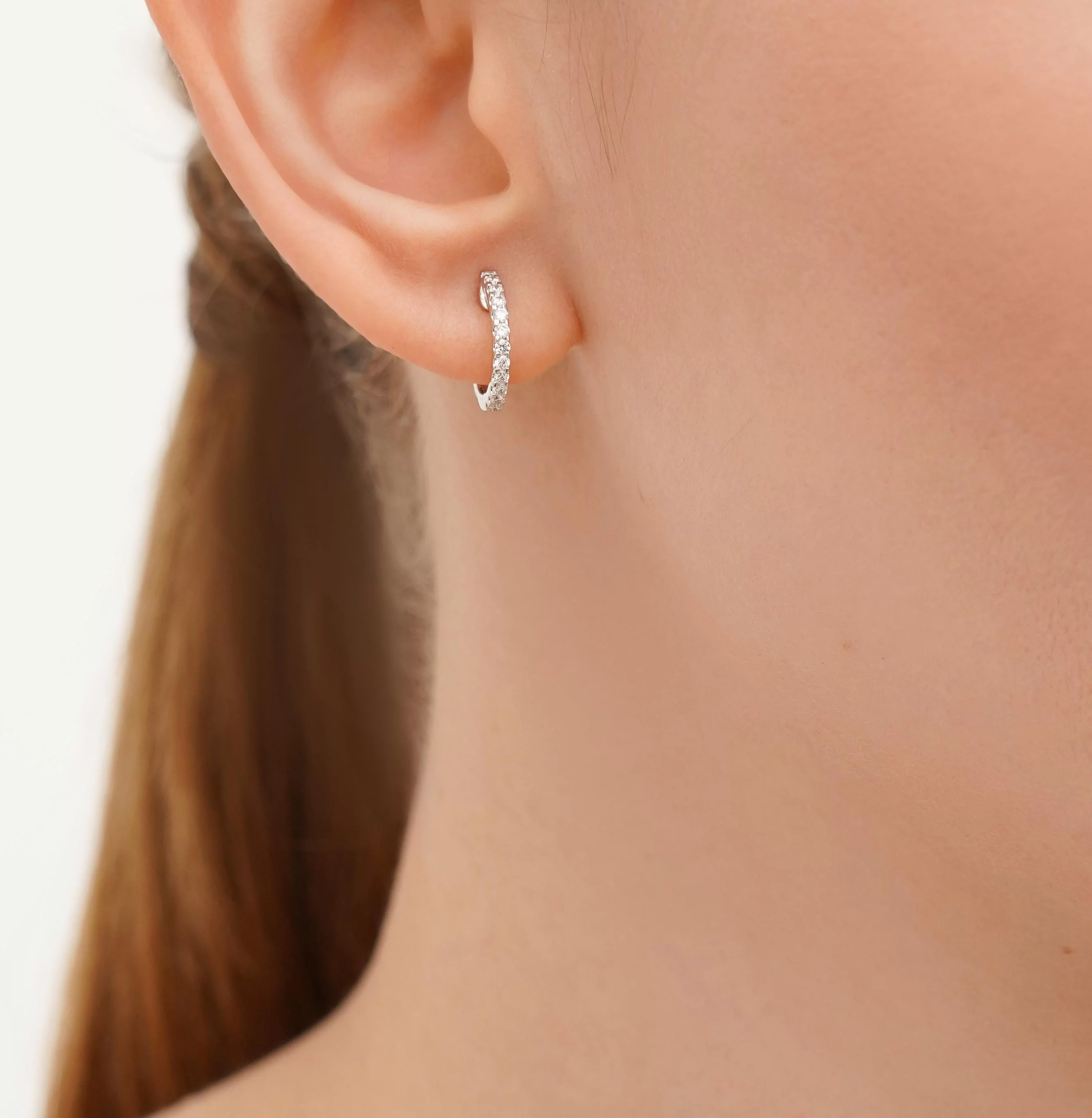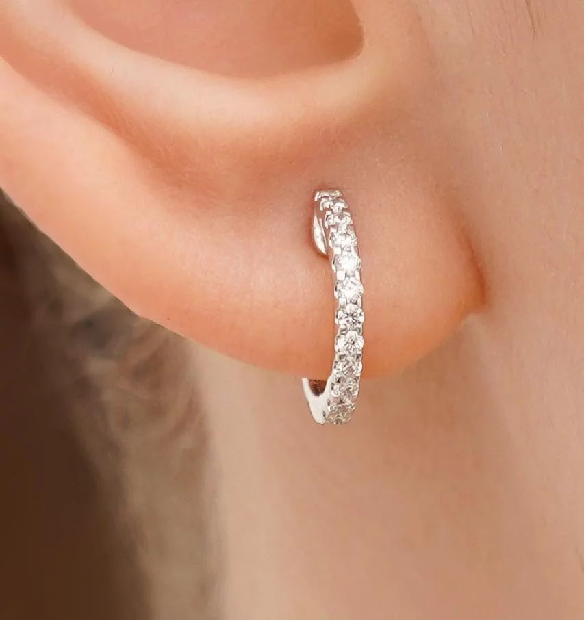 Стильні сережки-кільця з червоного золота з доріжкою діамантів - 1859349