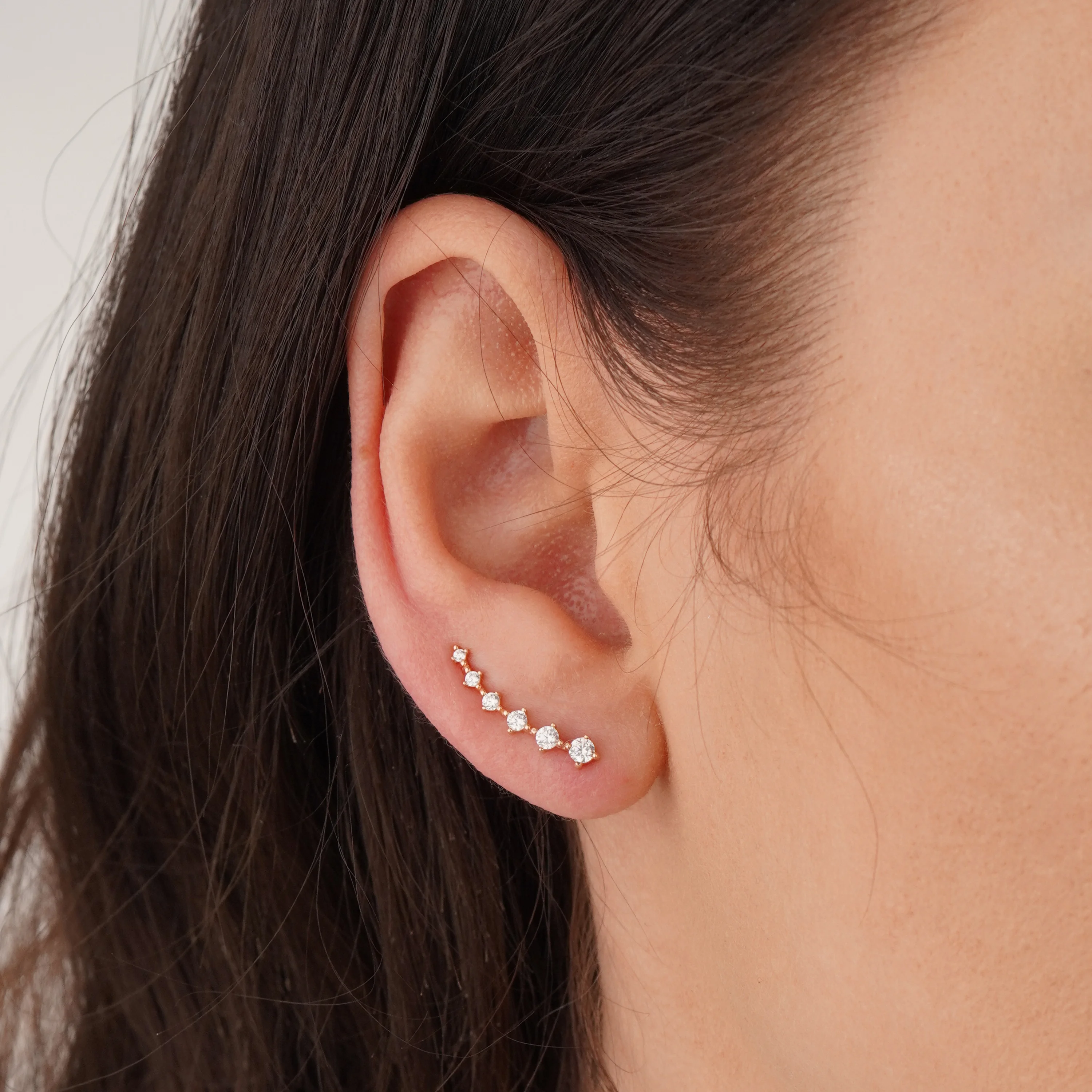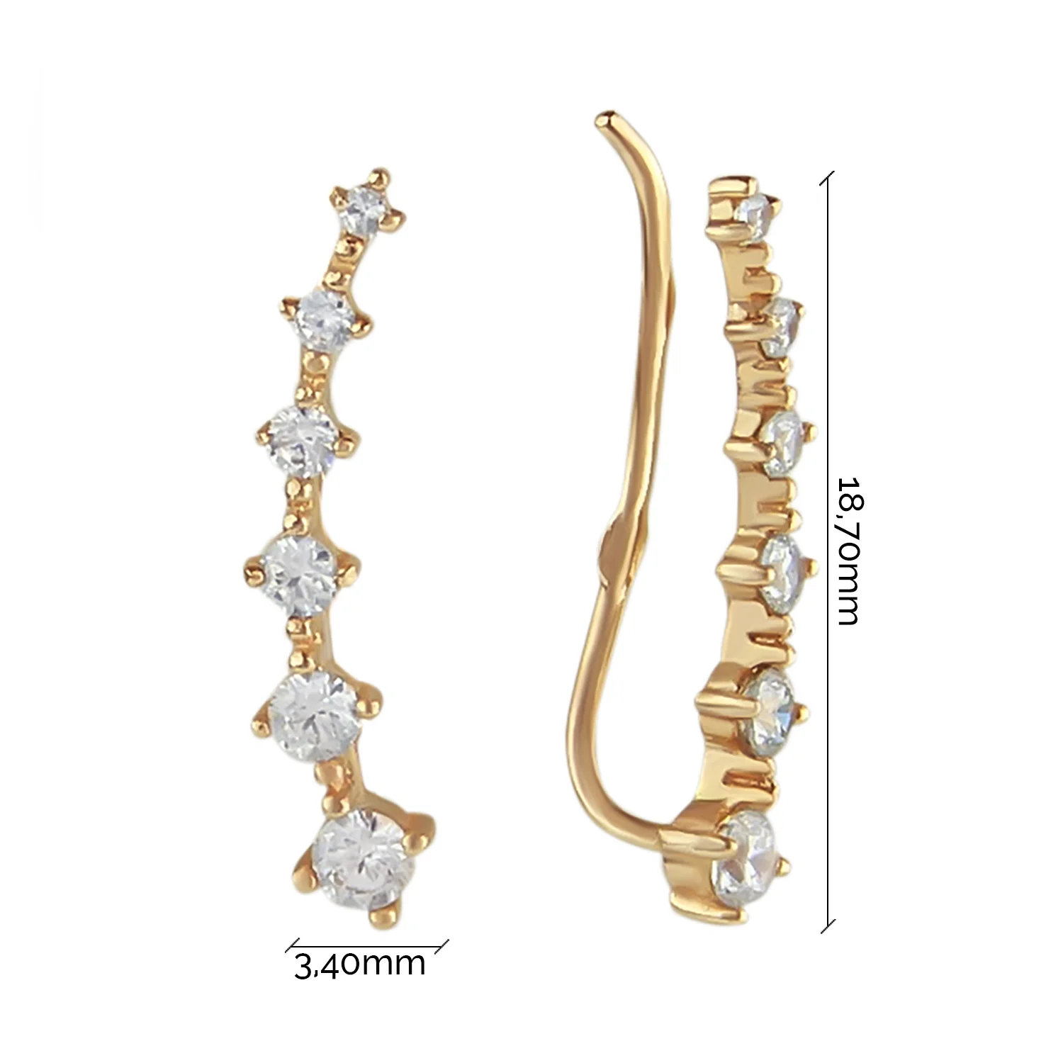 Сережки-клаймбери з фіанітами у червоному золоті - 594809