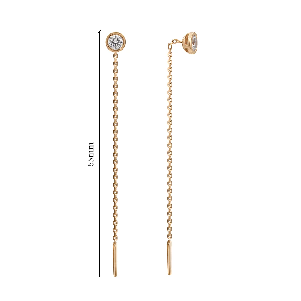 Елегантні сережки-протяжки в мінімалістичному дизайні з білого золота та фіанітами - 1870345
