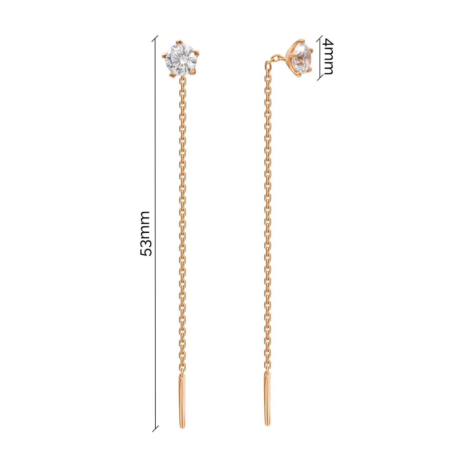 Елегантні сережки-протяжки в мінімалістичному дизайні з білого золота та фіанітами - 1870345