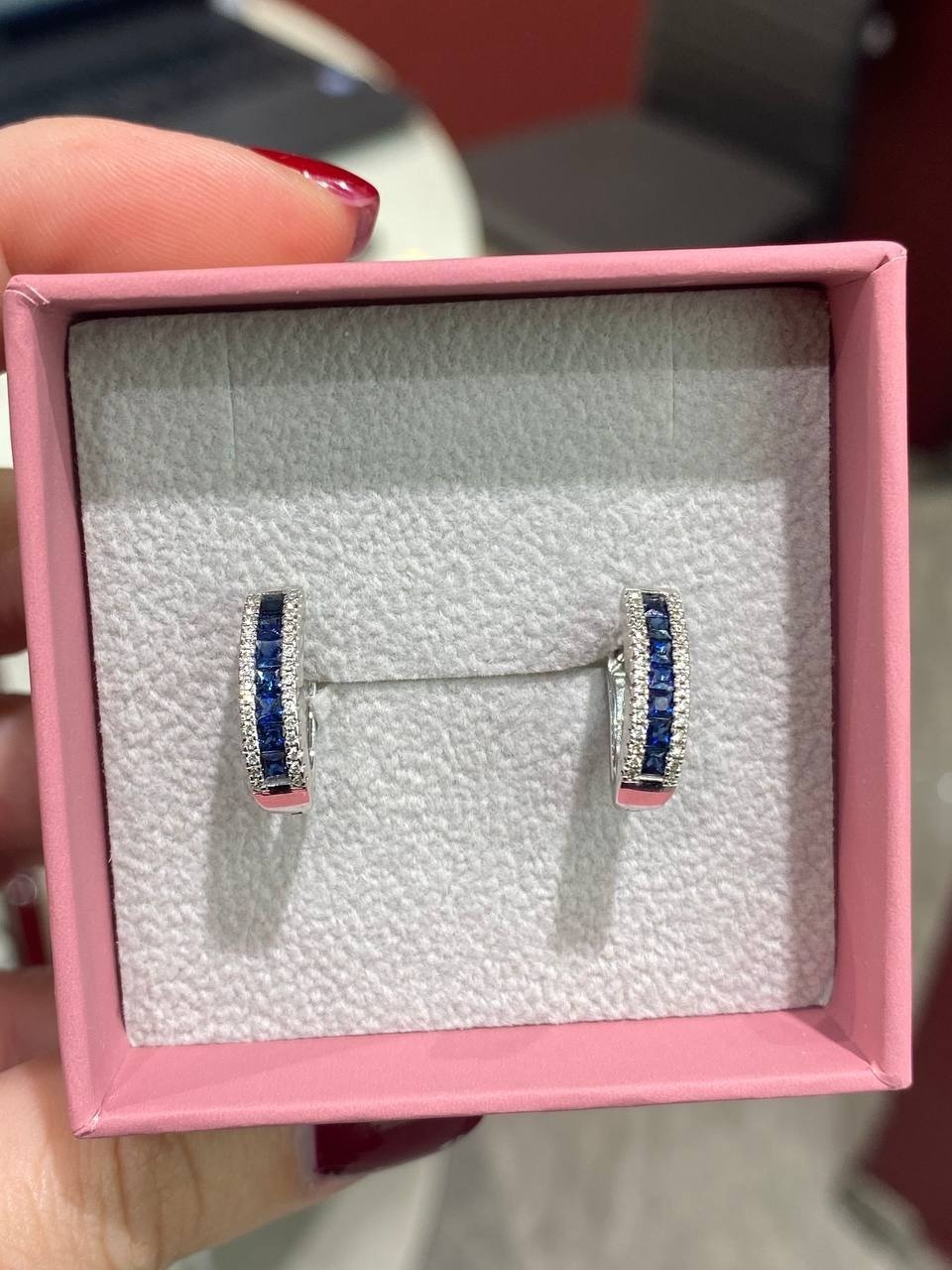 Сережки з червоного золота з підвісами сапфіром і діамантами - 1514621