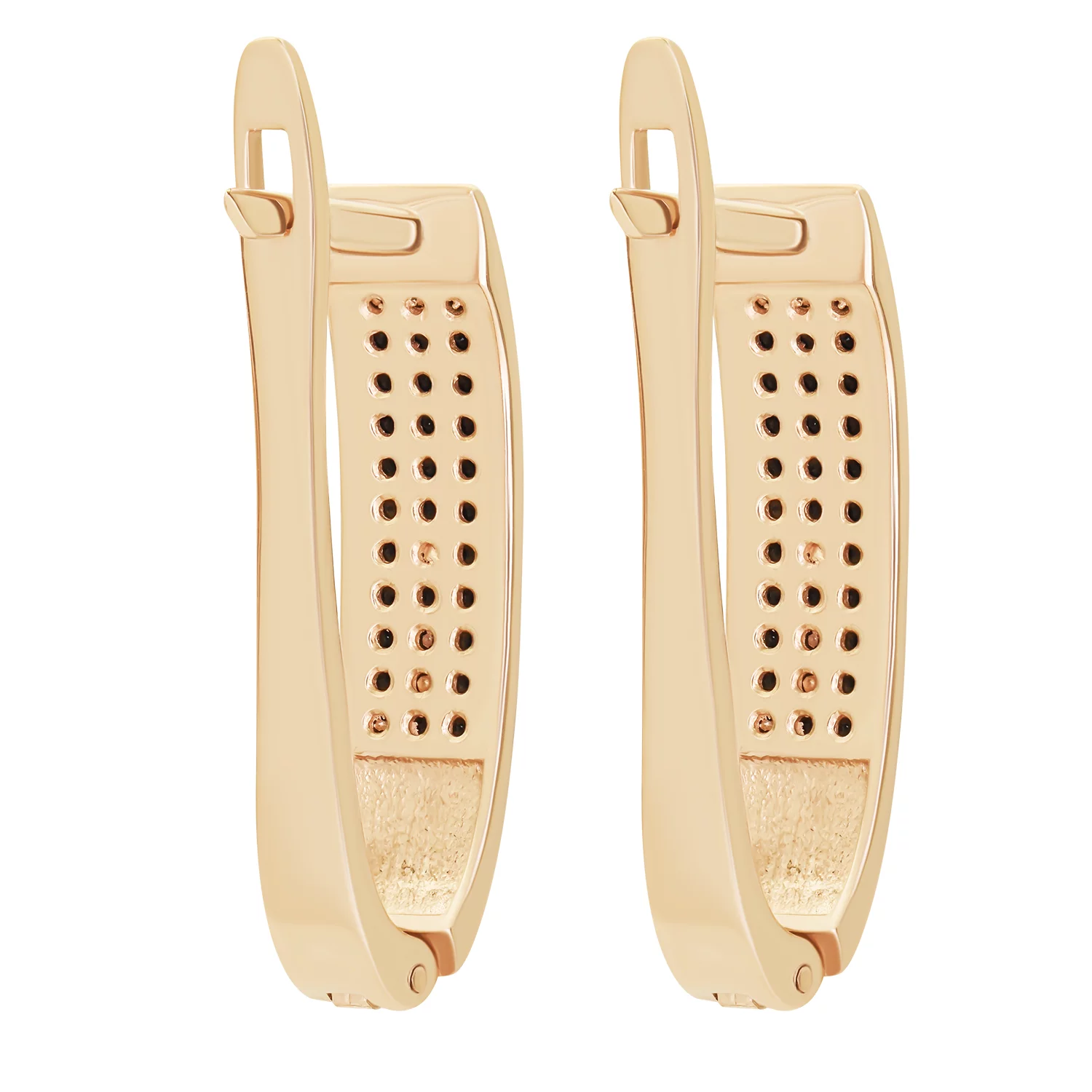 Сережки з червоного золота з підвісками з фіанітами і перламутром - 1508594