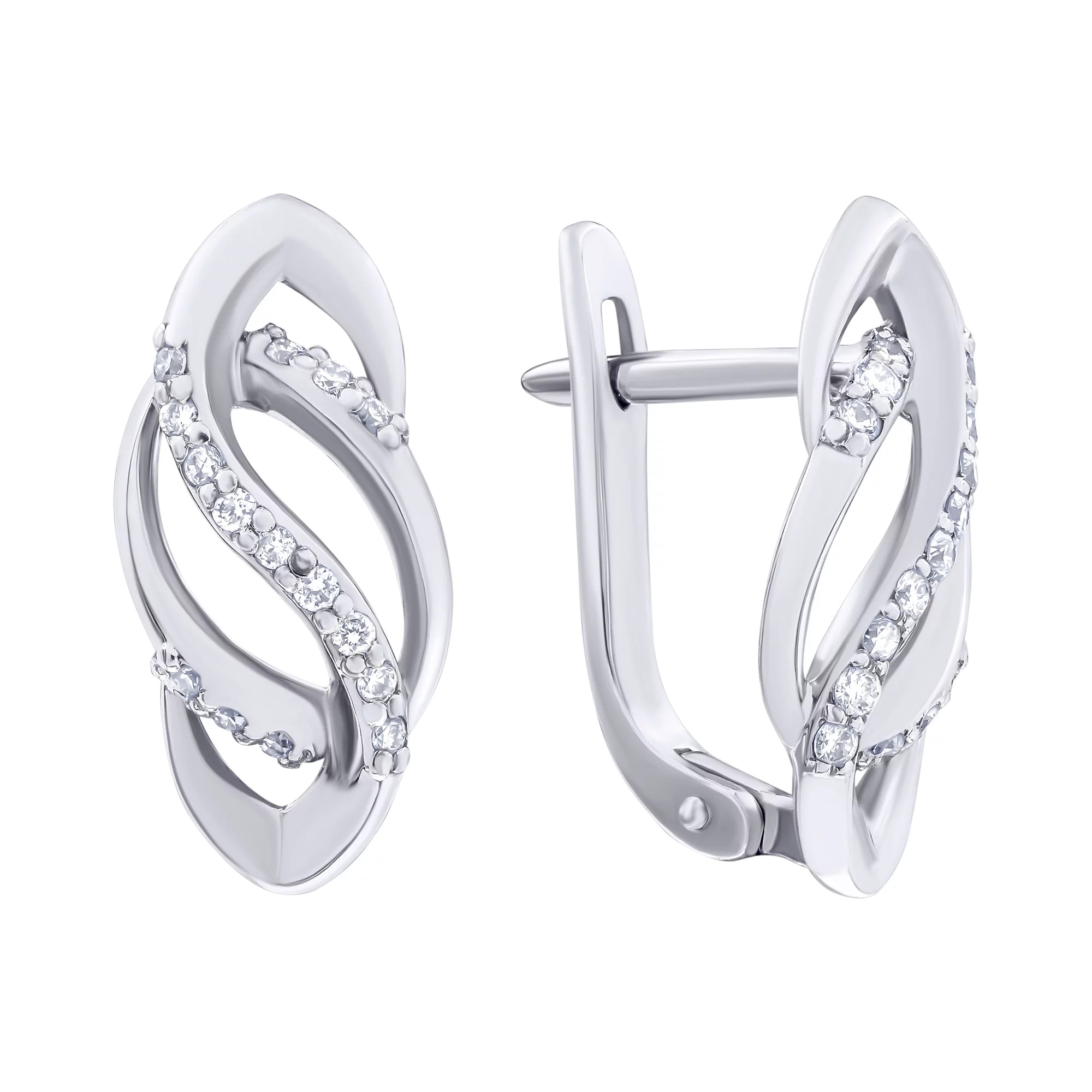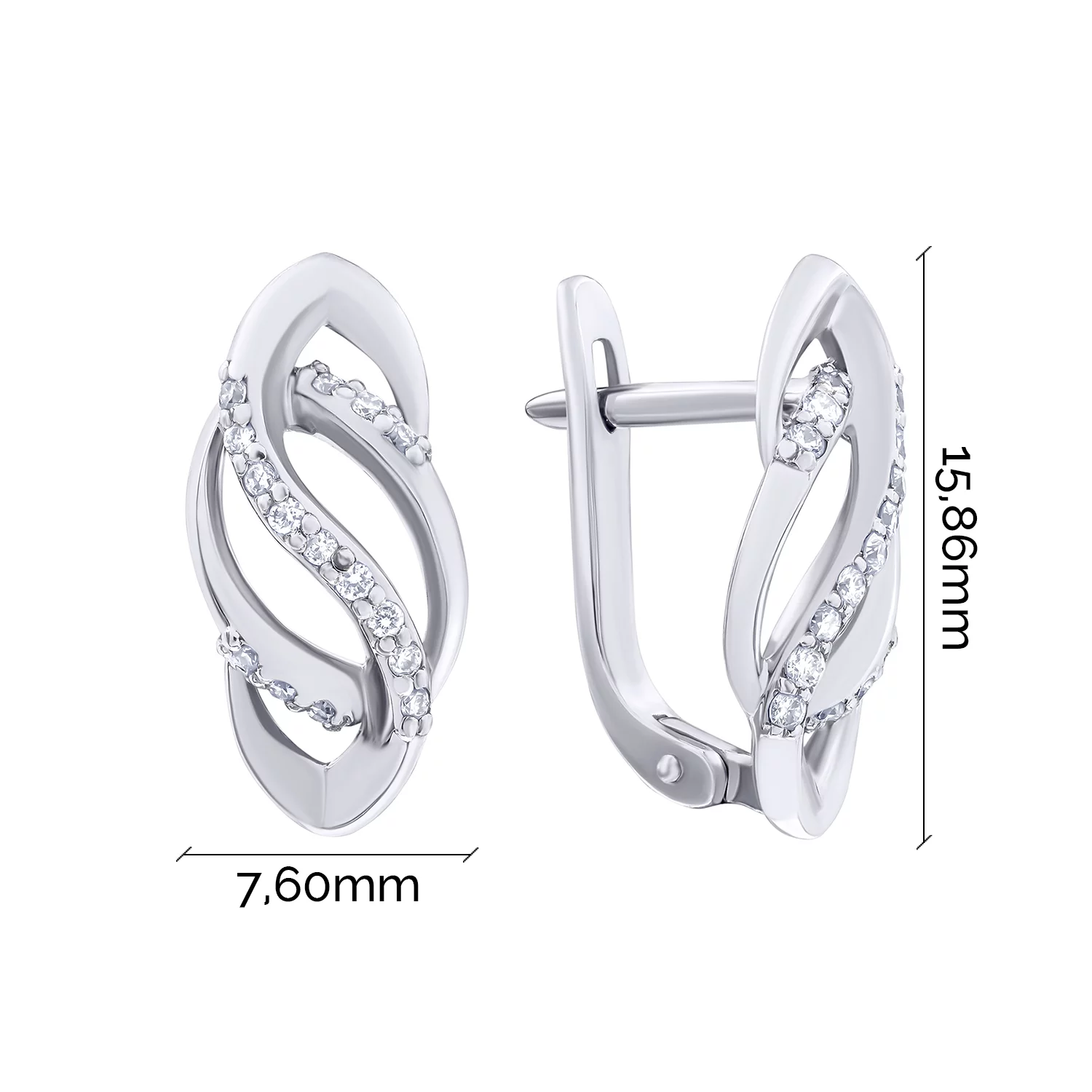 Сережки "Переплетіння" з білого золота з діамантами та смарагдами - 1821256