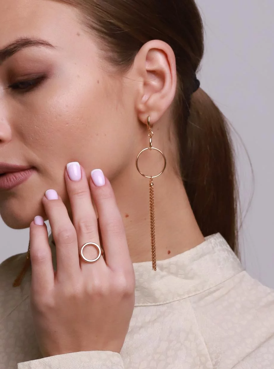 Сережки з червоного золота у мінімалістичному стилі з ланцюжками - 1942678