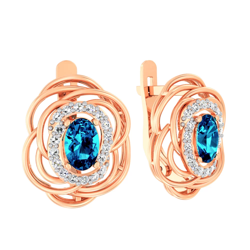 Золоті сережки з топазом лондон і фіанітом - 1501232