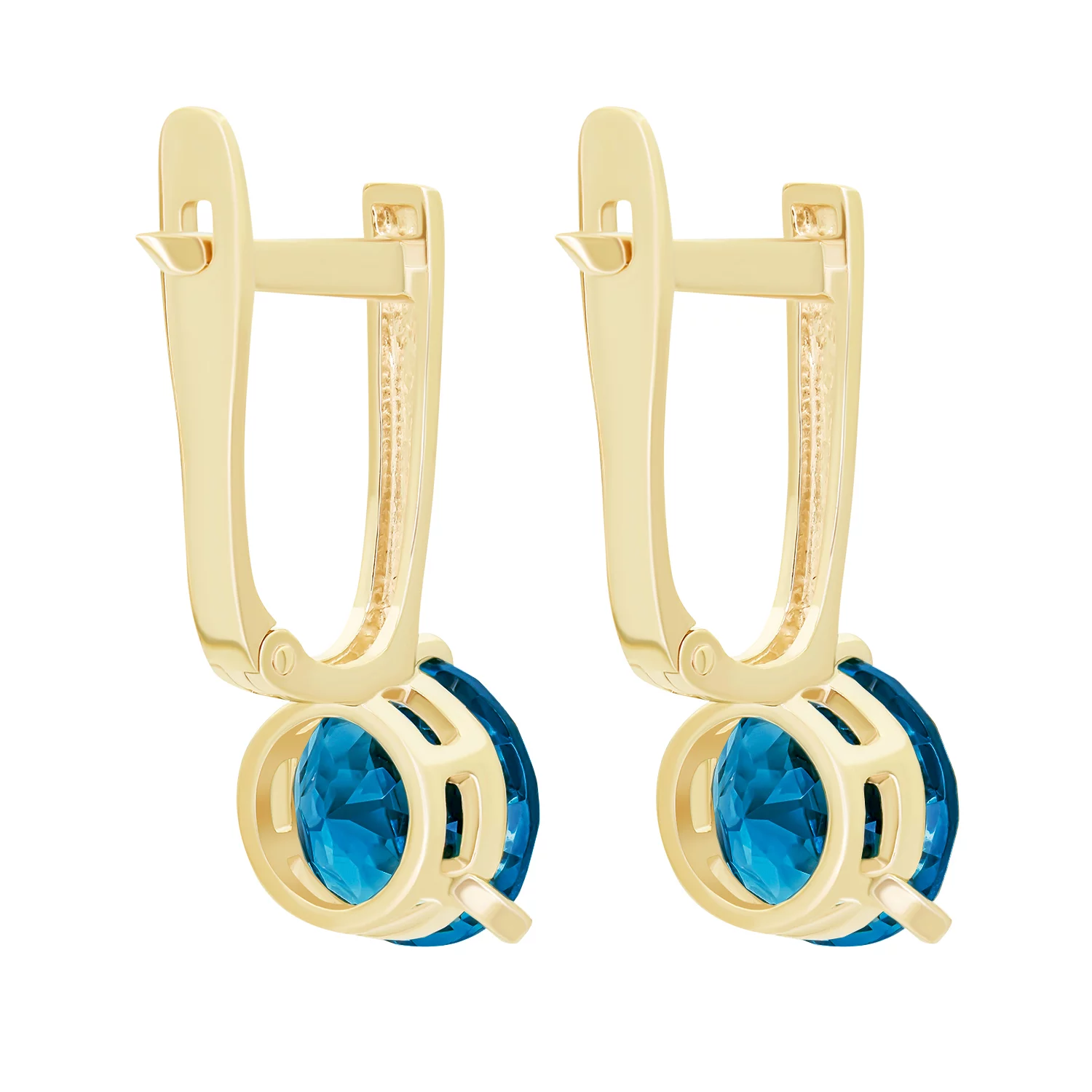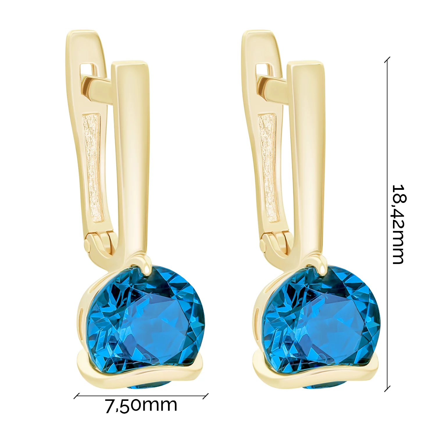 Сережки-гвоздики з топазом лондон і фіанітами з червоного золота - 1525469