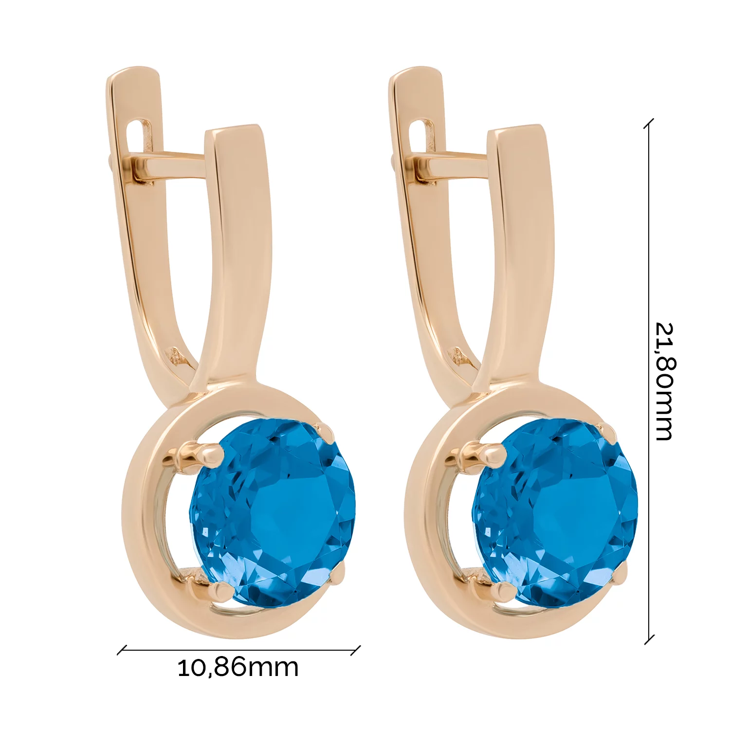 Сережки-гвоздики з топазом лондон і фіанітами з червоного золота - 1525469