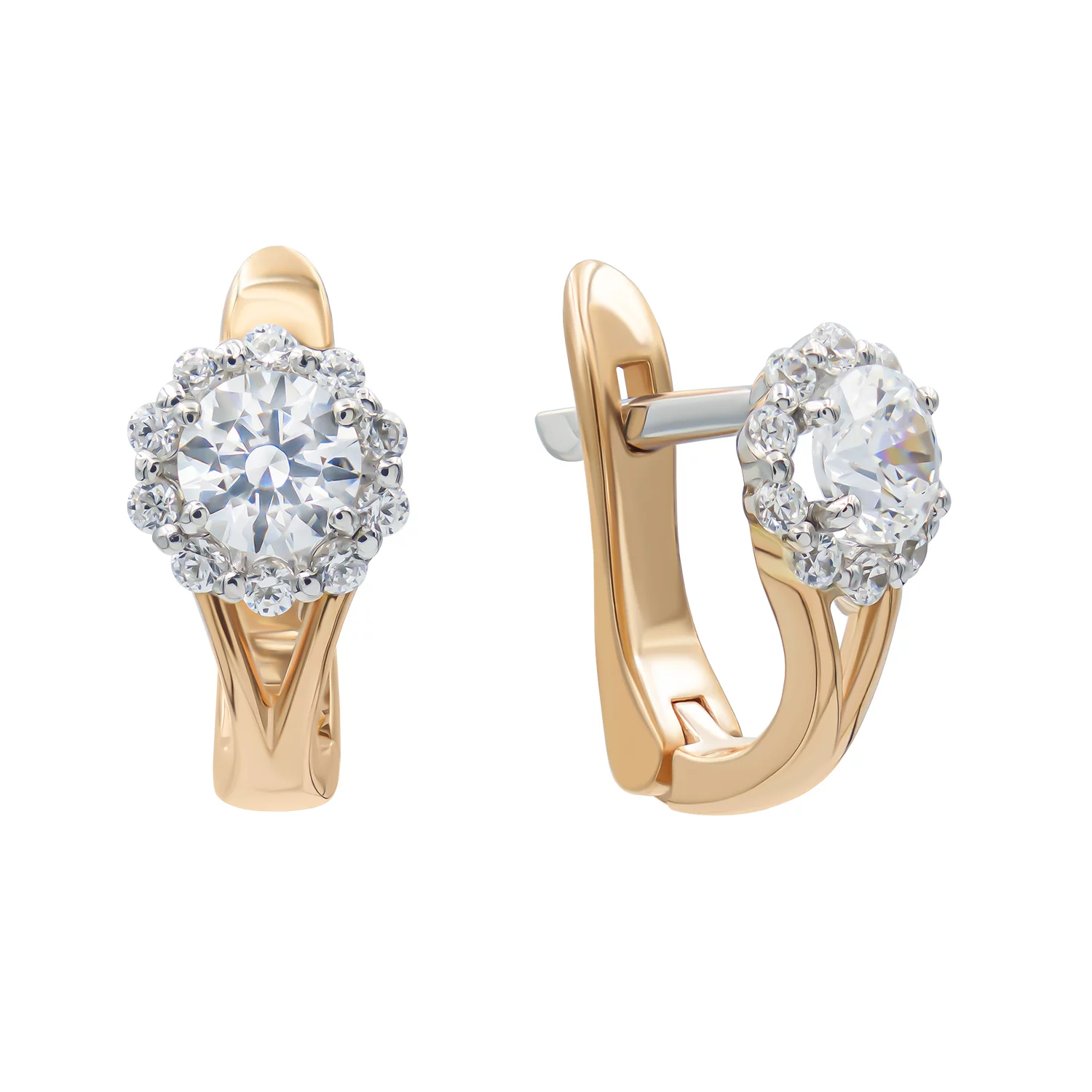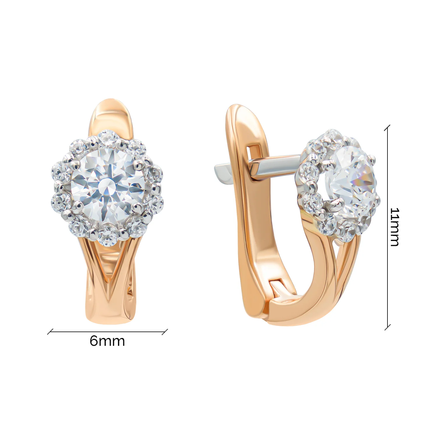 Сережки "Квадрат" у червоному золоті з гранатом та фіанітами - 1925554
