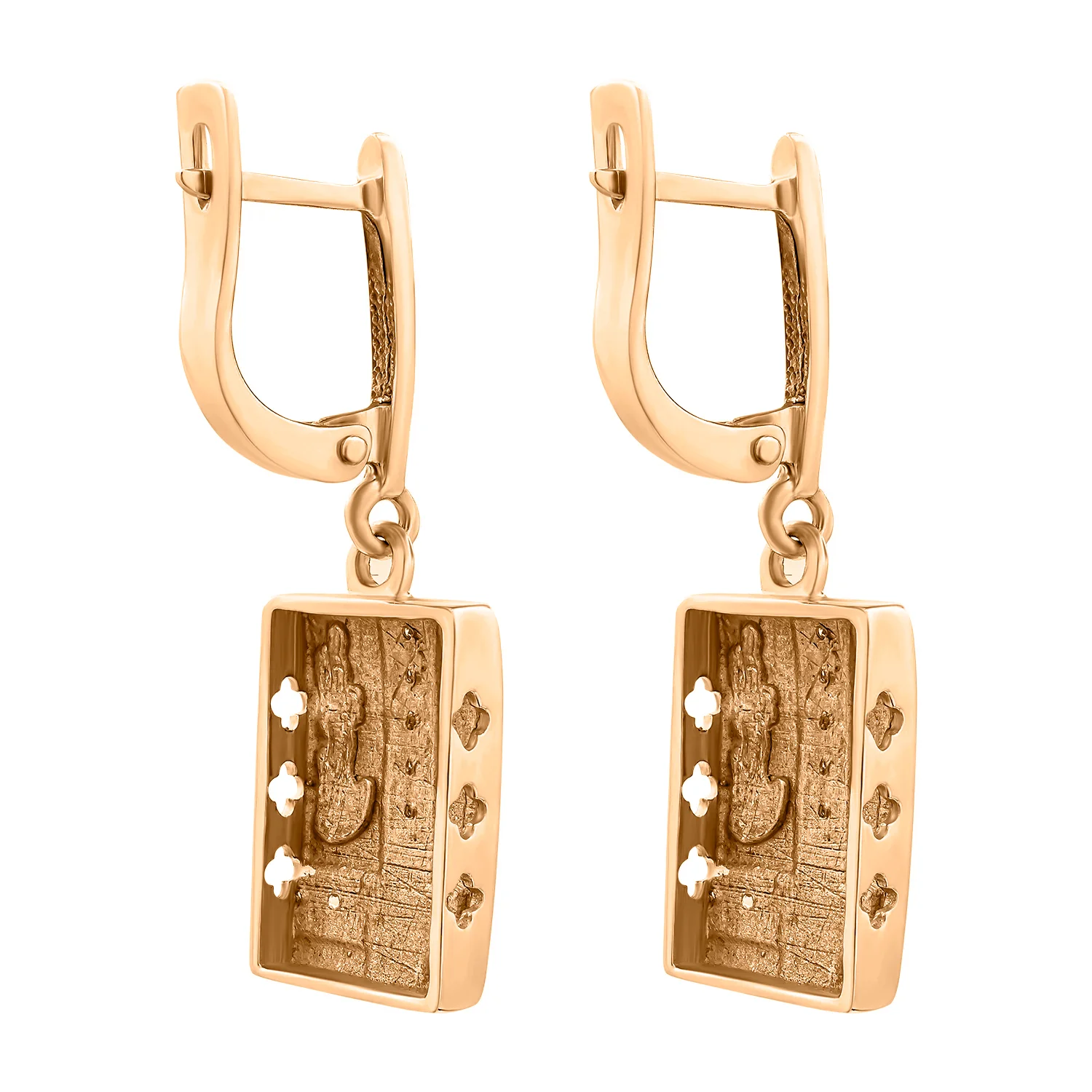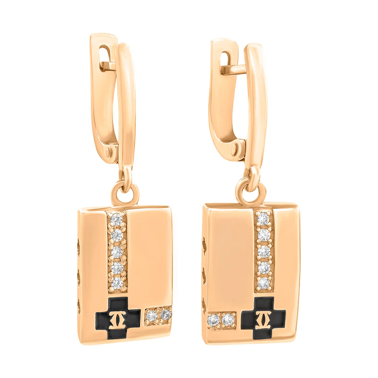 Сережки-кільця з червоного золота з підвісами "Пантера" з фіанітом - 1476753