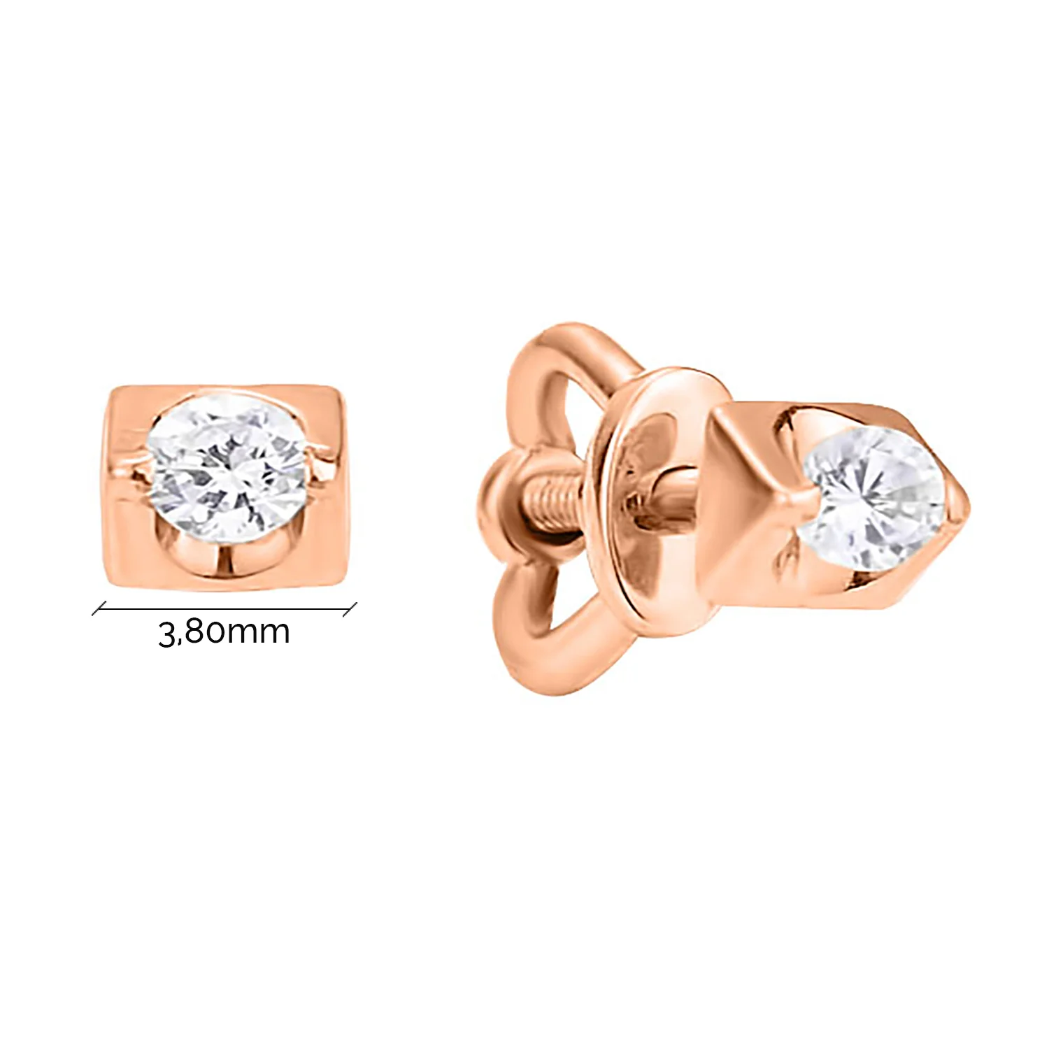 Сережки, виготовлені з червоного золота 585 проби, завжди мають виграшний вигляд на мочці вуха. Вироби у формі гвоздиків — це не лише практична, але й витончена, оригінальна прикраса. Особливо, якщо в ній є цирконій. Прозорий камінь утримується двома золотими пластинами у вигляді трикутників. Складається враження, що вони тримають цирконій і ось-ось випустять його. Водночас не варто турбуватися — камінь надійно закріплений у виробі. Такі сережки червоного відтінку пасуватимуть жінкам із сильним, вольовим характером.