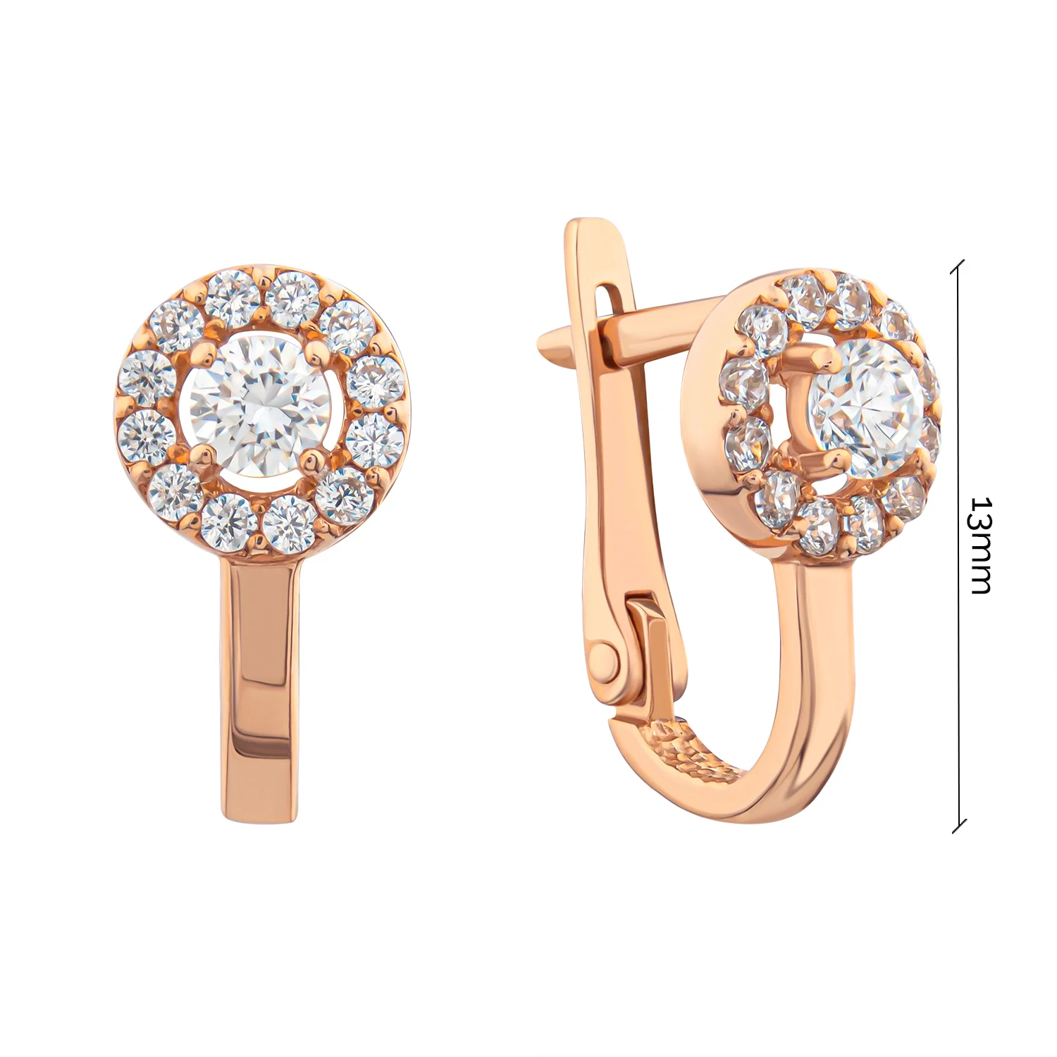 Стильні сережки "Коло" у червоному золоті з емаллю та фіанітами - 1958507