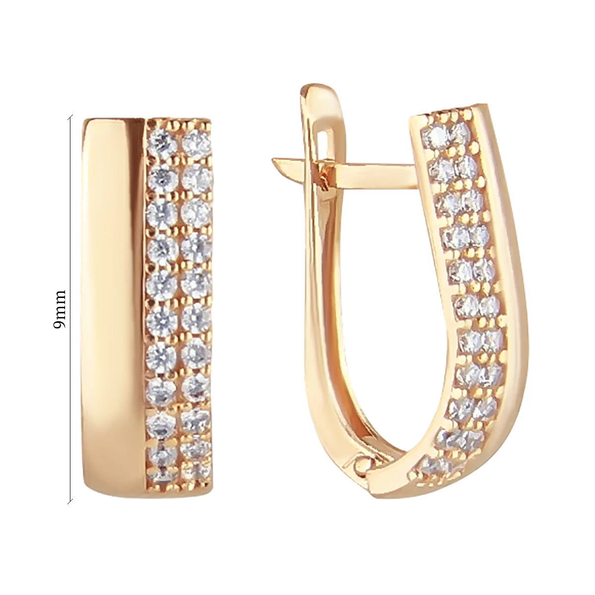 Елегантні сережки-протяжки в мінімалістичному дизайні з білого золота та фіанітами - 1870345
