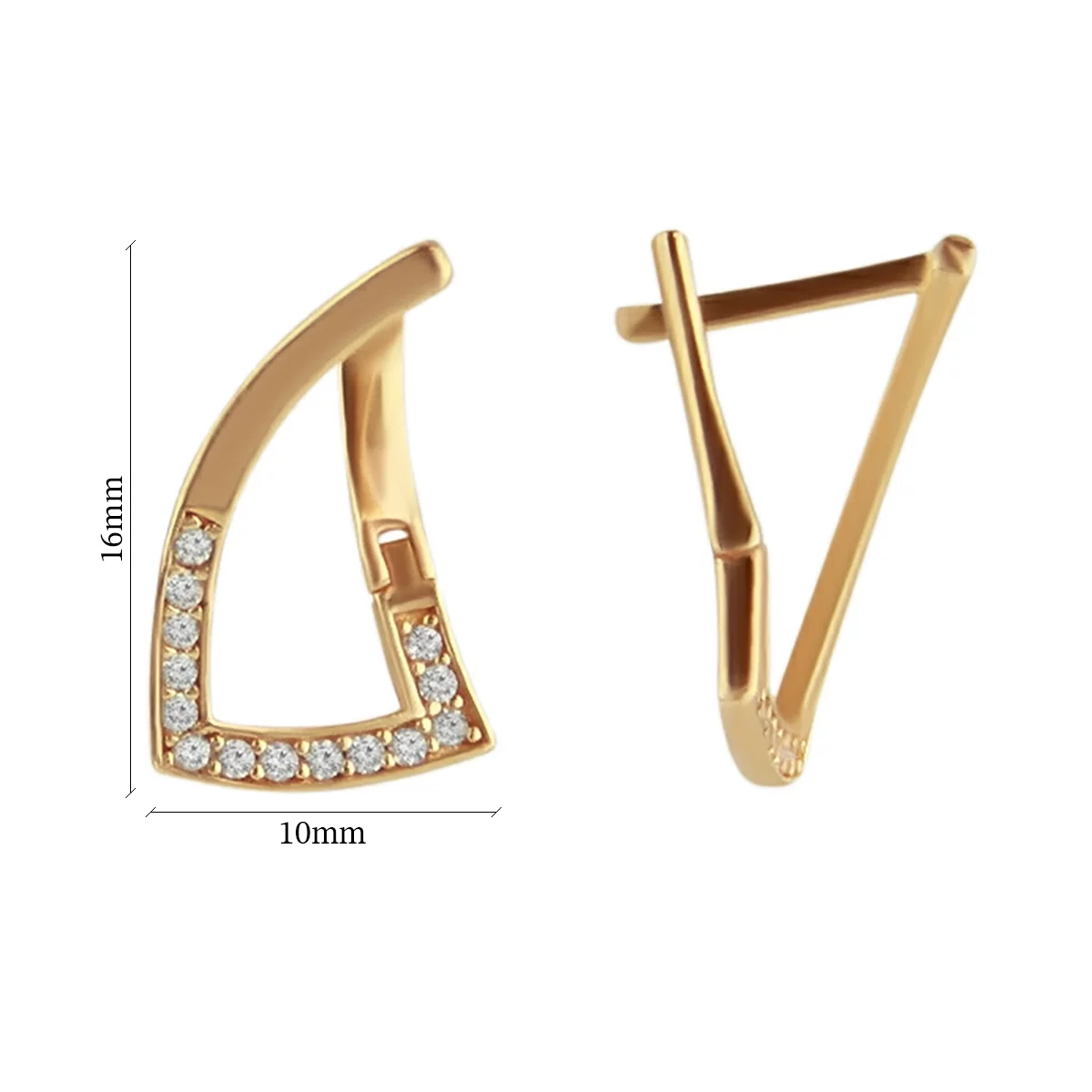 Елегантні сережки-гвоздики у формі квадрата в червоному золоті з фіанітами - 1876967