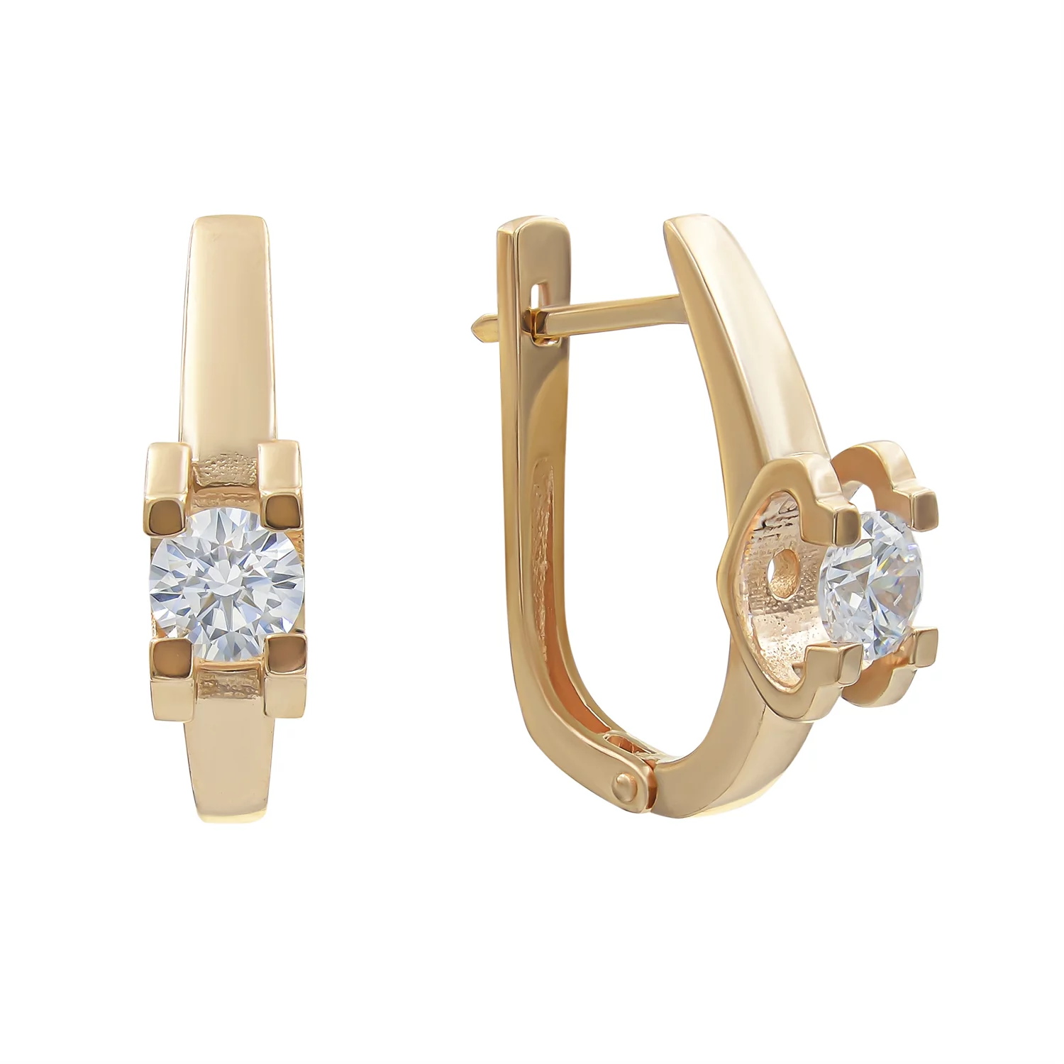 Елегантні сережки-протяжки в мінімалістичному дизайні з білого золота та фіанітами - 1870345