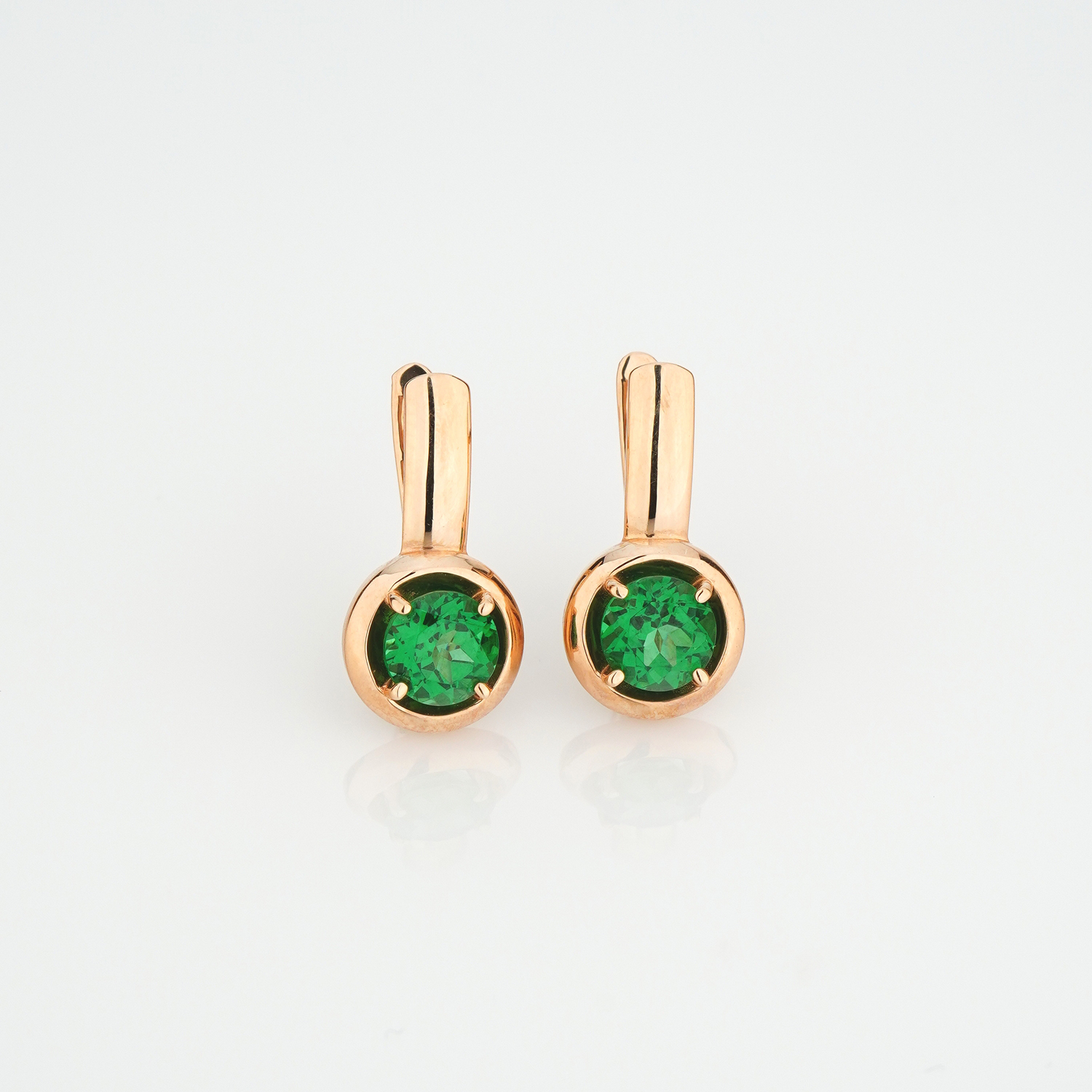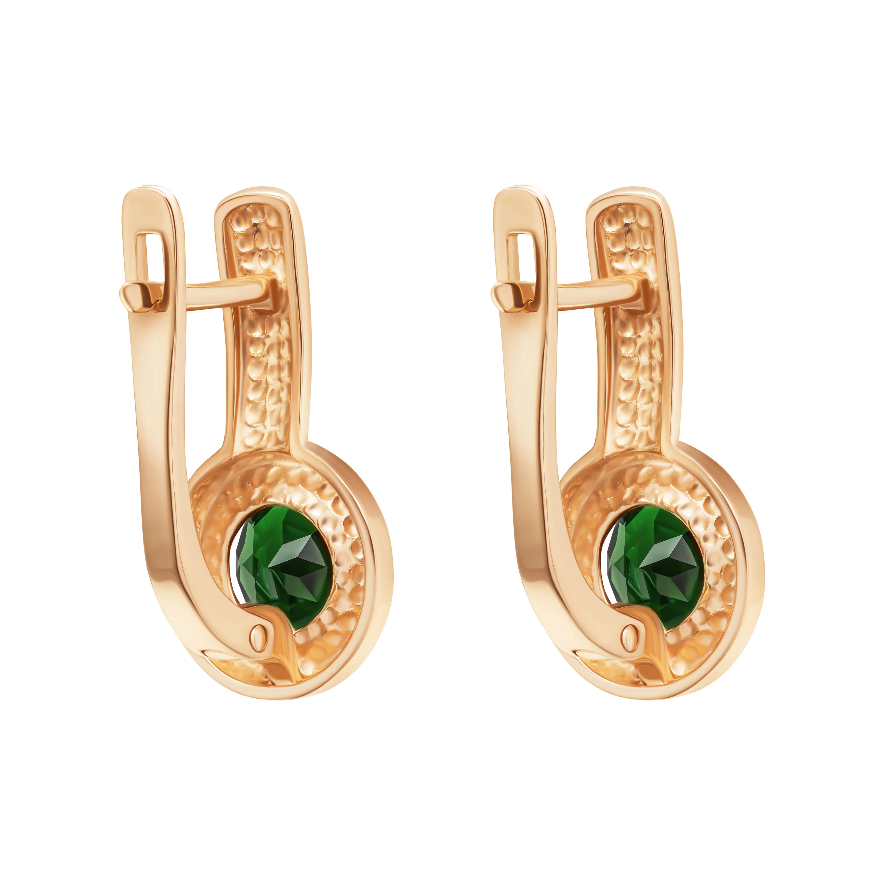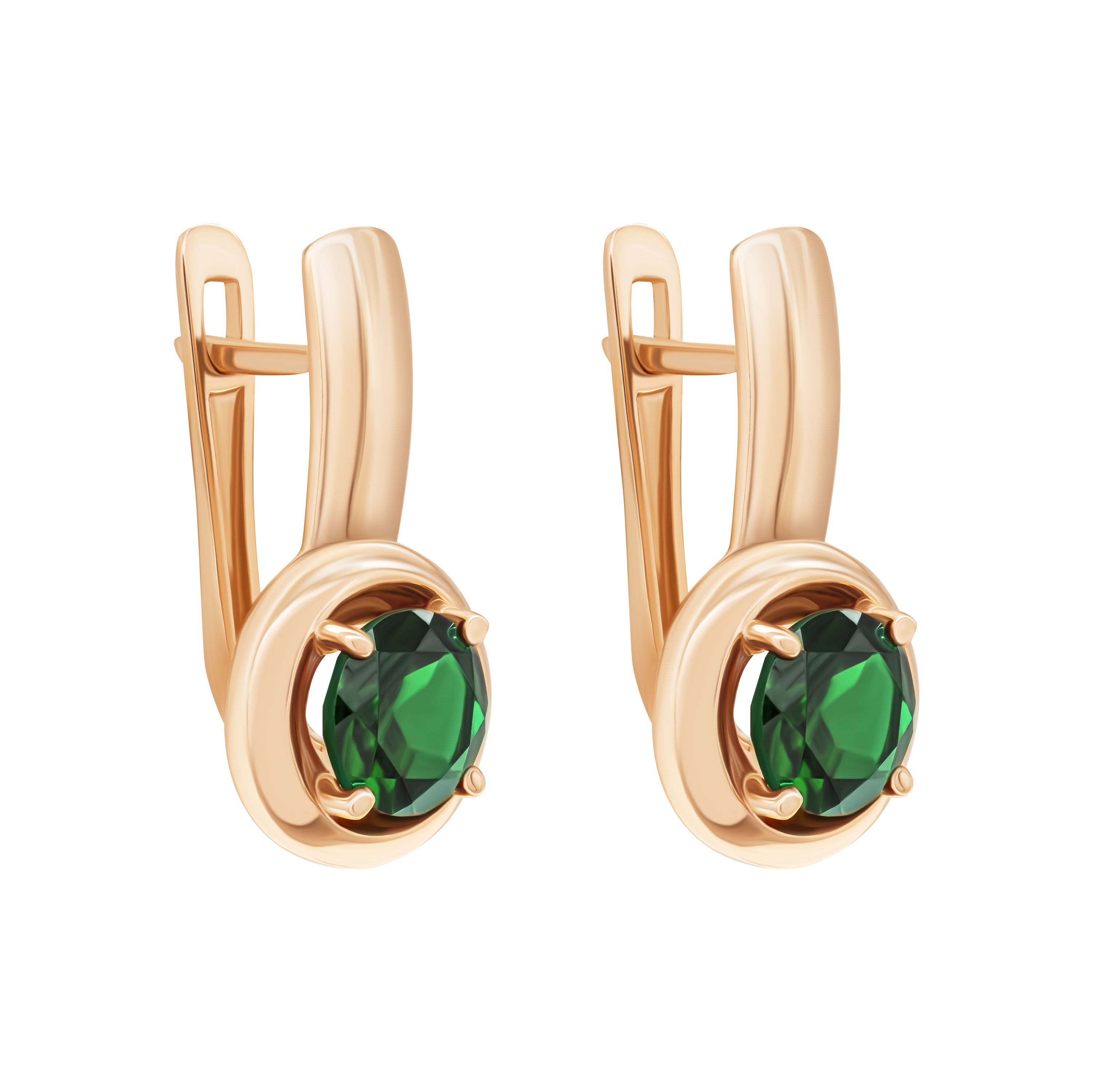 Сережки з червоного золота з підвісним турмаліном і фіанітами - 1687879
