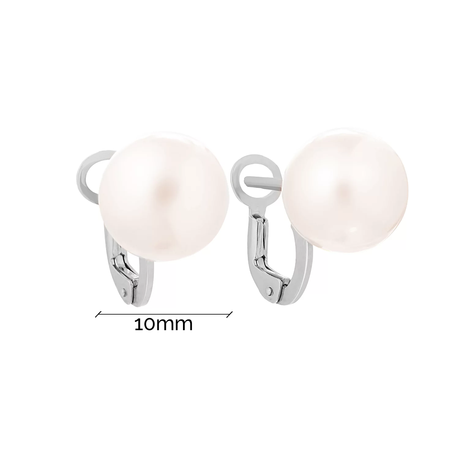 Сережки у формі листочка з червоного золота з перлиною і фіанітами - 1630904