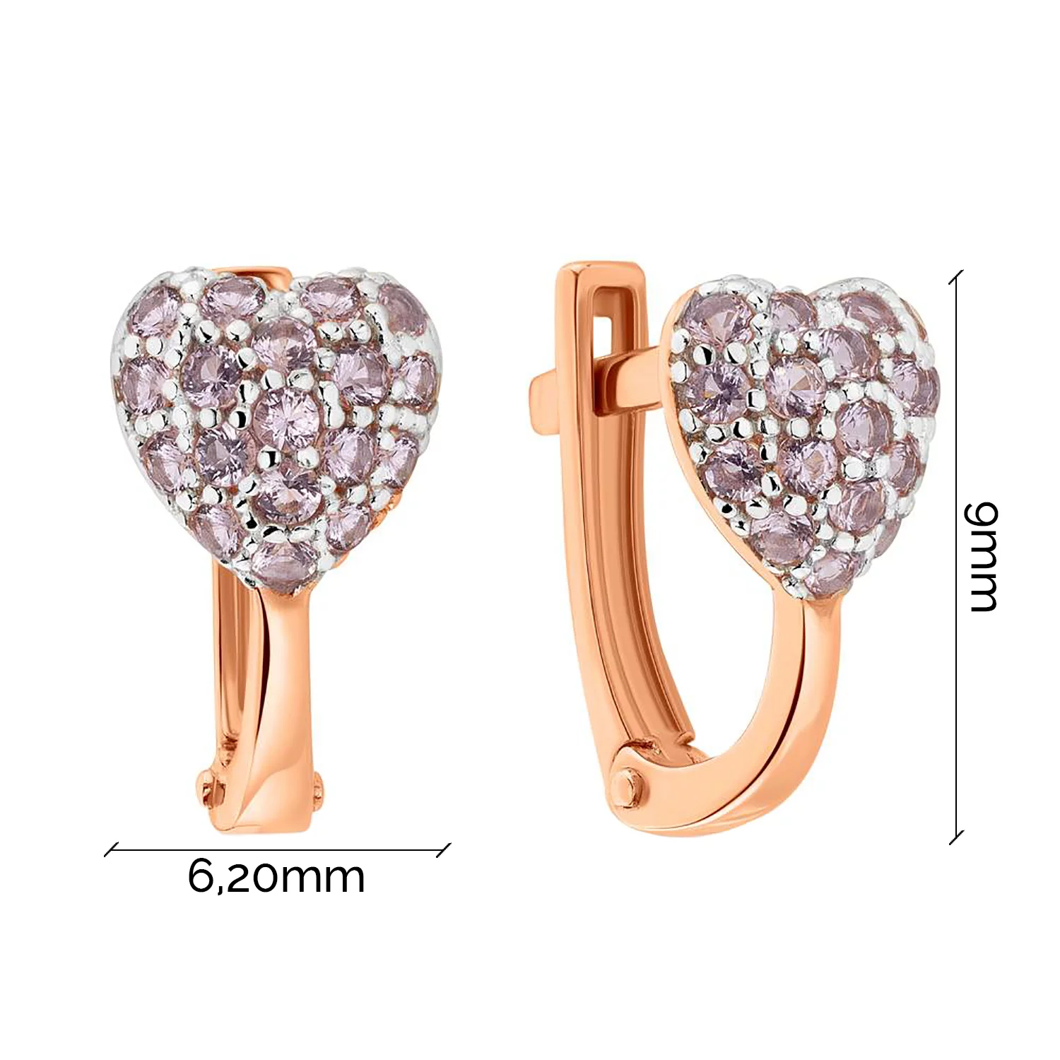 Сережки-гвоздики у червоному золоті золоті "Серце" з фіанітами - 1589229
