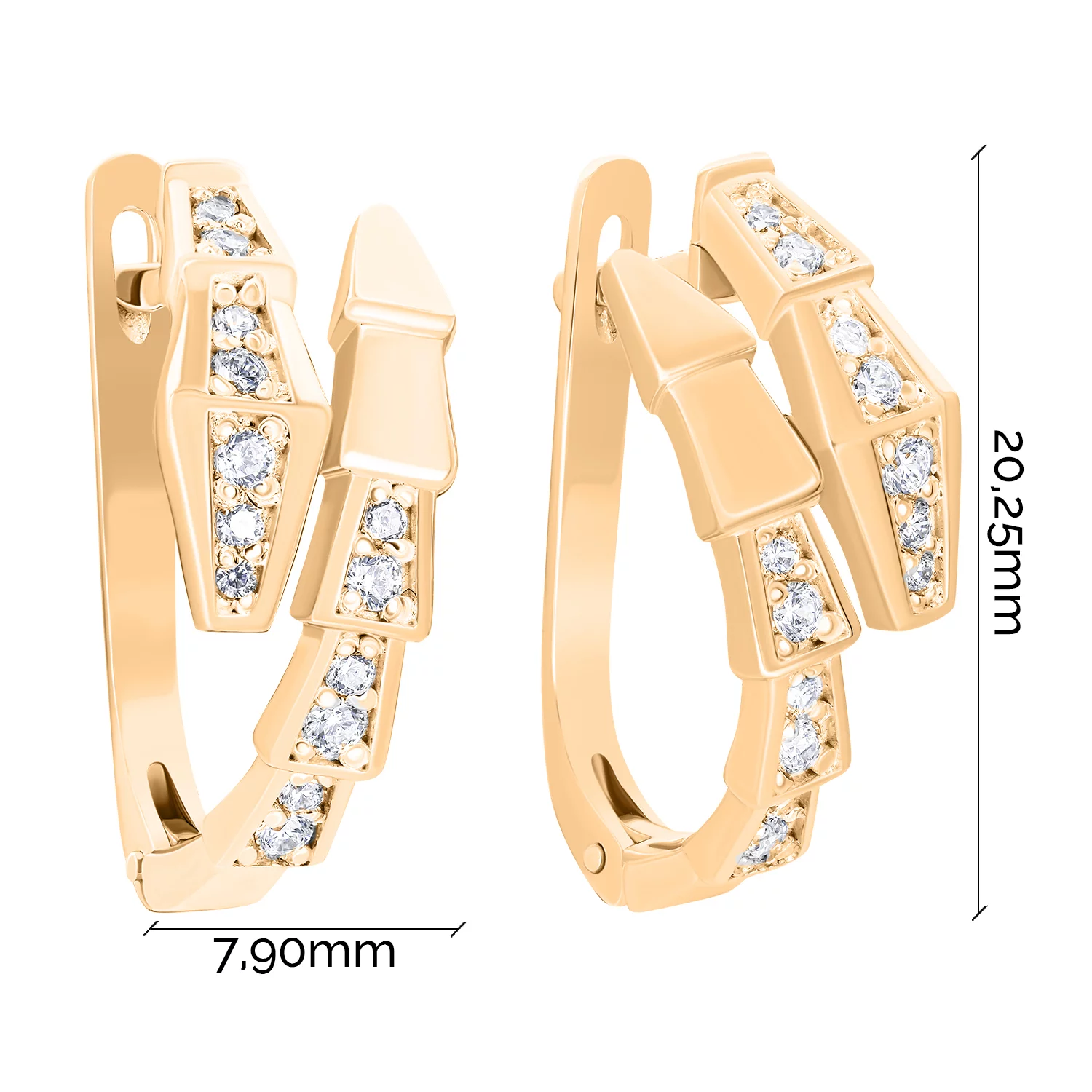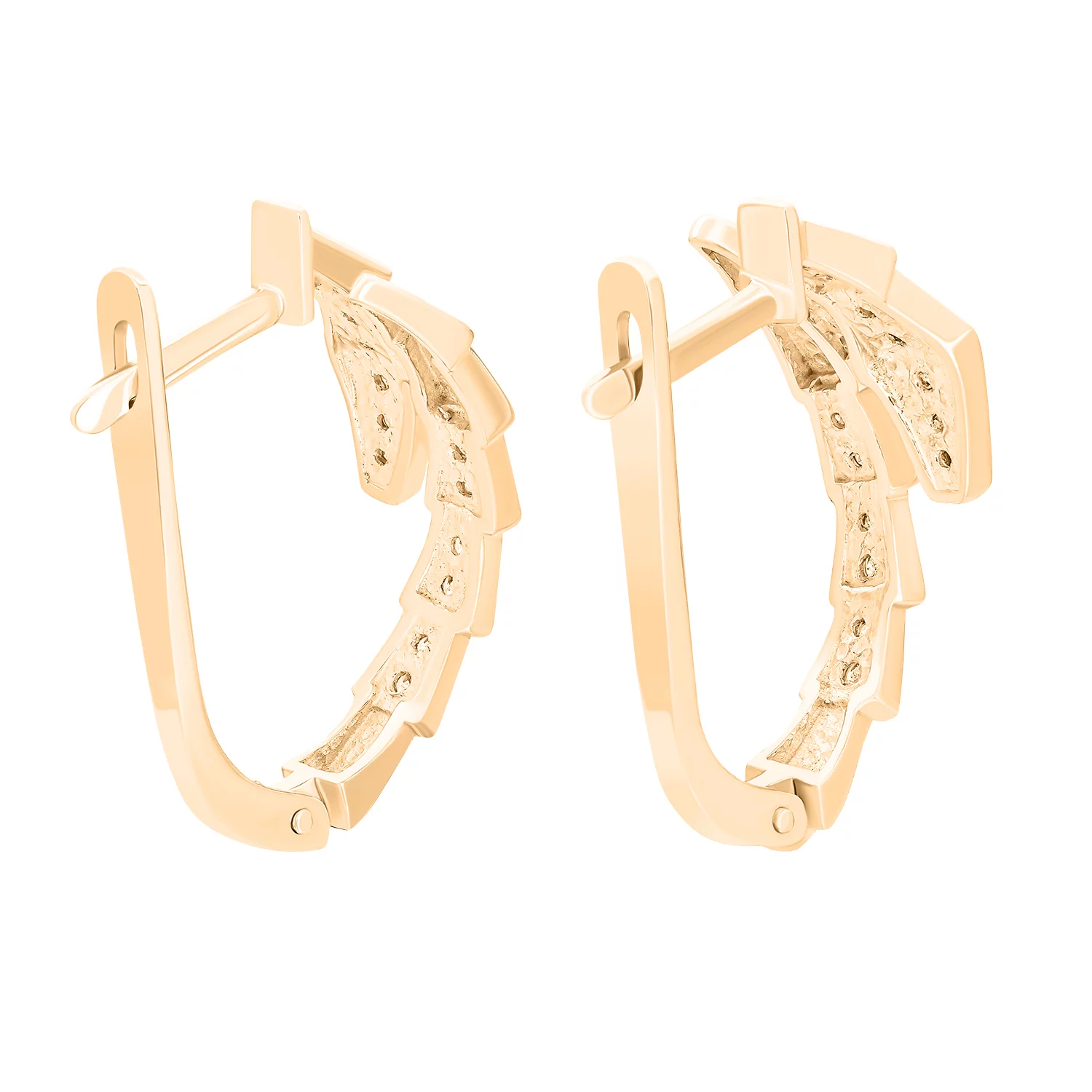Сережки-кільця з червоного золота з підвісами "Пантера" з фіанітом - 1476753